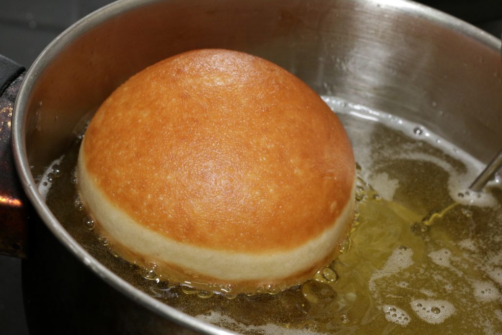 מחממים שמן בסיר עמוק ל170 מעלות, מכניסים בזהירות כדור כדור ומטגנים, הופכים כל צד לאחר הזהבה.