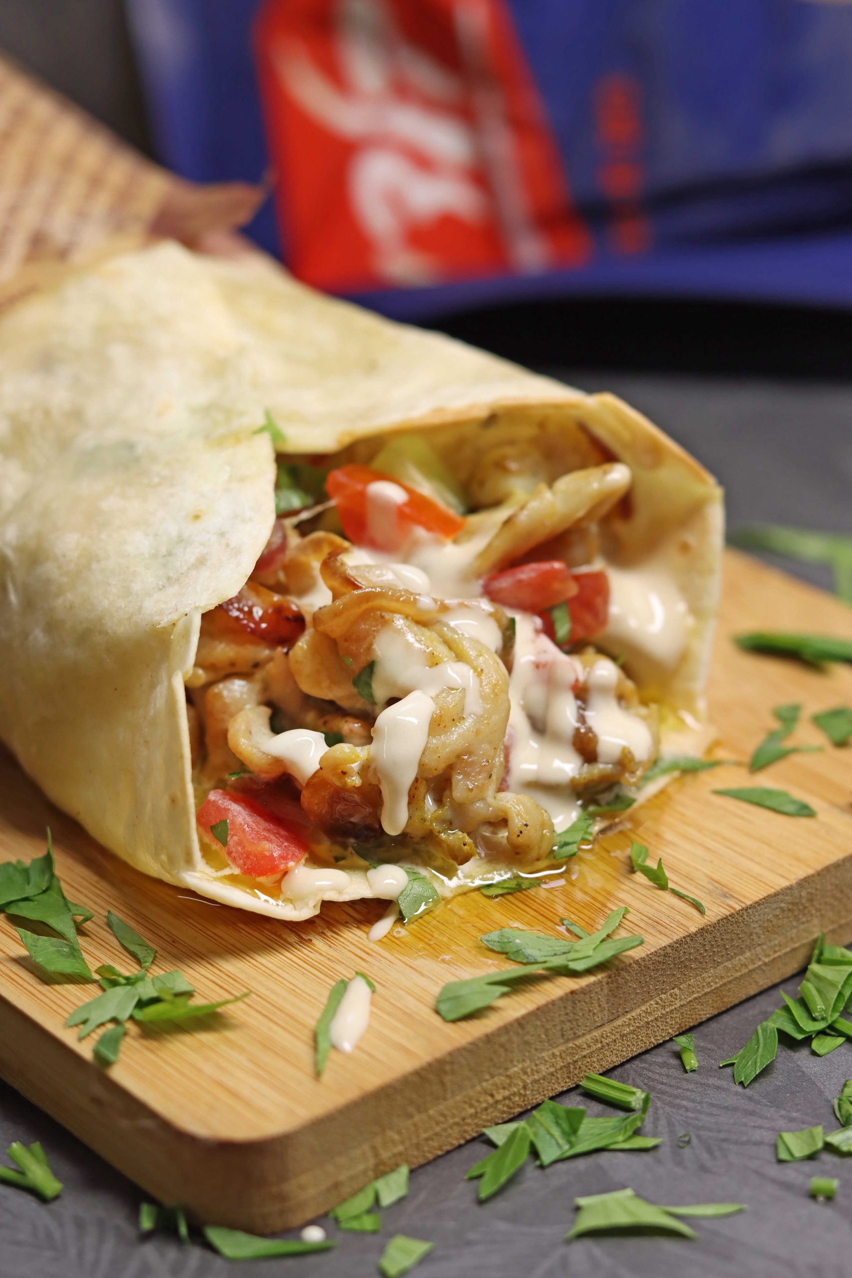 מגלגלים את הטורטייה, מזלפים עוד טחינה מלמעלה – וסוגרים עם ביס שכולו חגיגה.