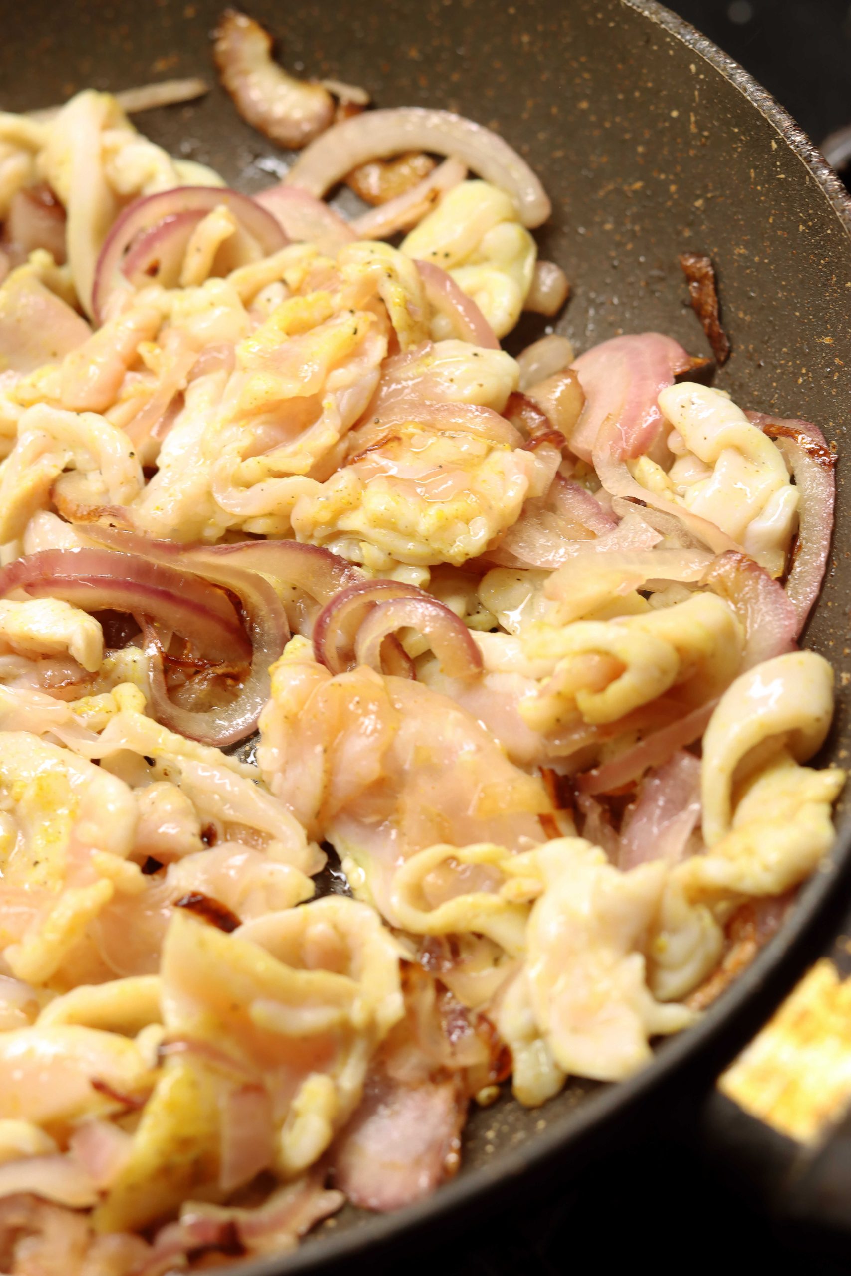 מטגנים את הבצל הסגול עד להזהבה קלה.