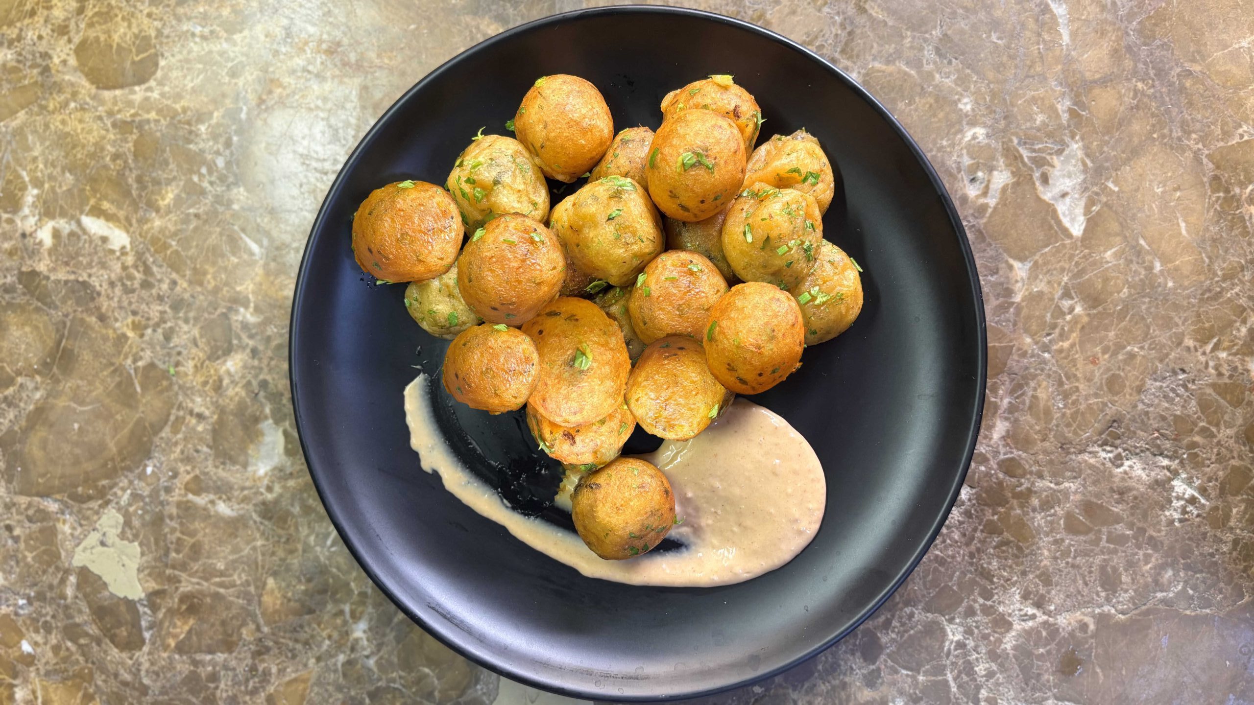 כדורי תפוחי אדמה פריכים מבחוץ ונימוחים מבפנים, עם תיבול מעושן נועז ומטבל ברביקיו קטיפתי בצד. מתכון קליל, טבעוני ואולטרה ממכר – לטיגון או אפייה.